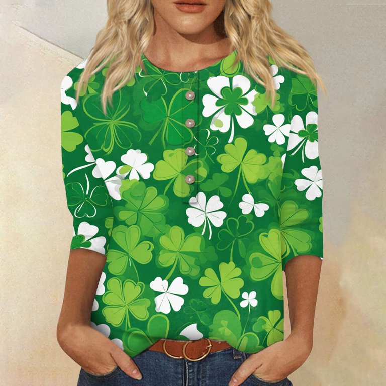 Source : www.amazon.comSKSloeg St Patrick’s Day Black 3/4 Sleeve Shirt for Woman Button